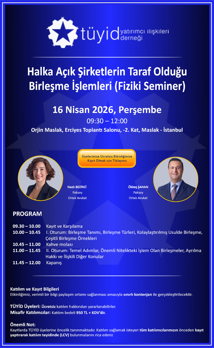 TÜYİD Halka Açık Şirketlerin Taraf Olduğu Birleşme İşlemleri Fiziki Semineri