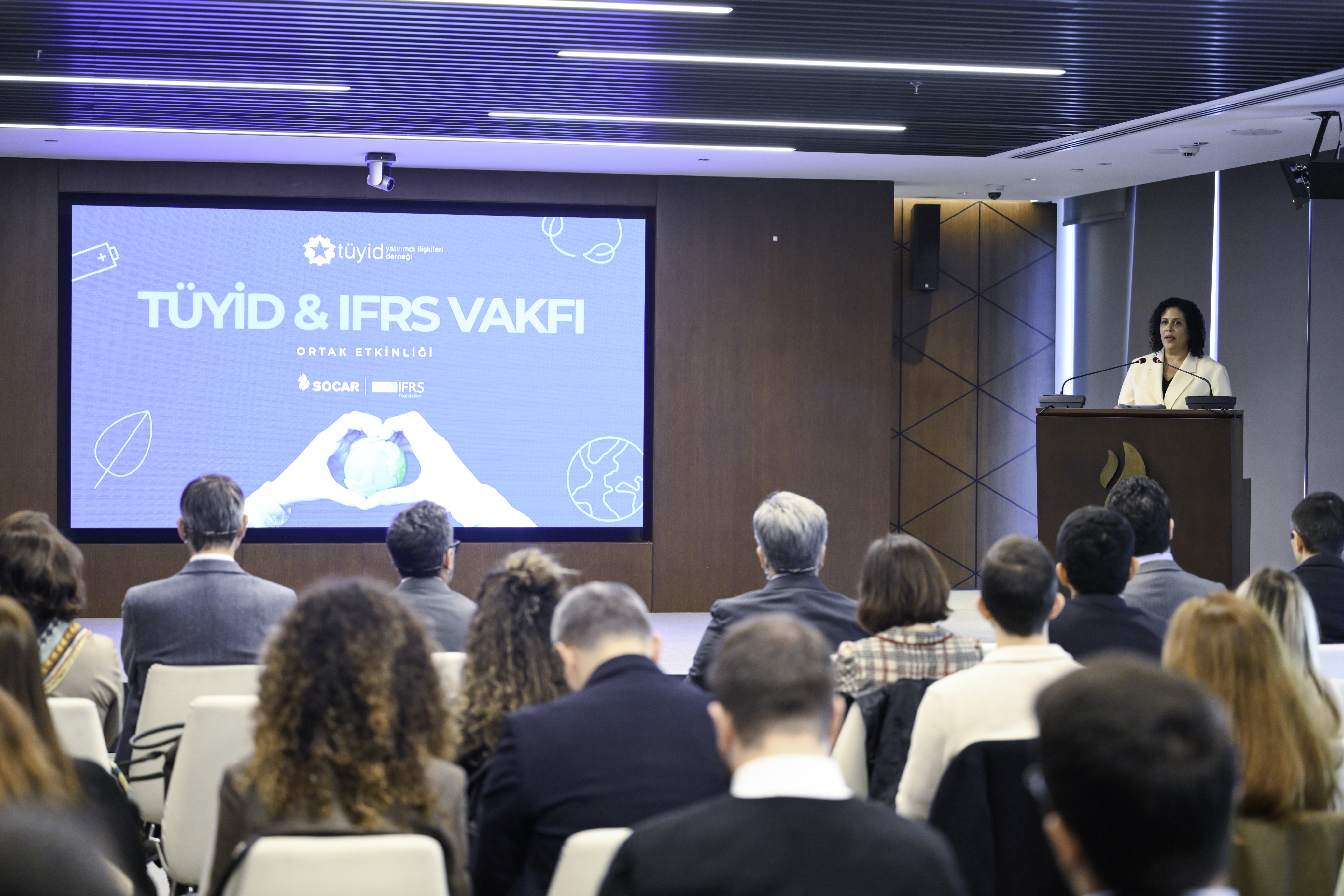 Seminerler ve Paneller Sohbet Toplantıları Eğitim ve Çalıştaylar Roadshow ve Konferanslar Y.İ. Zirvesi Sürdürülebilir Yatırım ZirvesiTÜYİD ve IFRS Vakfı iş birliğiyle, SOCAR Türkiye ev sahipliğinde 14 Kasım 2025 tarihinde düzenlenen “TÜYİD – IFRS Vakfı Etkinliği” başlıklı etkinlik, sürdürülebilirlik raporlamasında küresel standartların yerel uygulamalarla buluştuğu önemli bir platform oluşturdu.