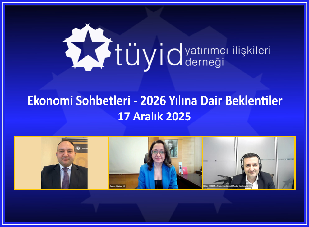 Seminerler ve Paneller Sohbet Toplantıları Eğitim ve Çalıştaylar Roadshow ve Konferanslar Y.İ. Zirvesi Sürdürülebilir Yatırım ZirvesiTÜYİD olarak yılda iki kez düzenlediğimiz geleneksel Ekonomi Sohbetleri etkinliğimiz kapsamında, “2026 Yılına Dair Beklentiler” başlıklı webinarımız başarıyla gerçekleştirildi.