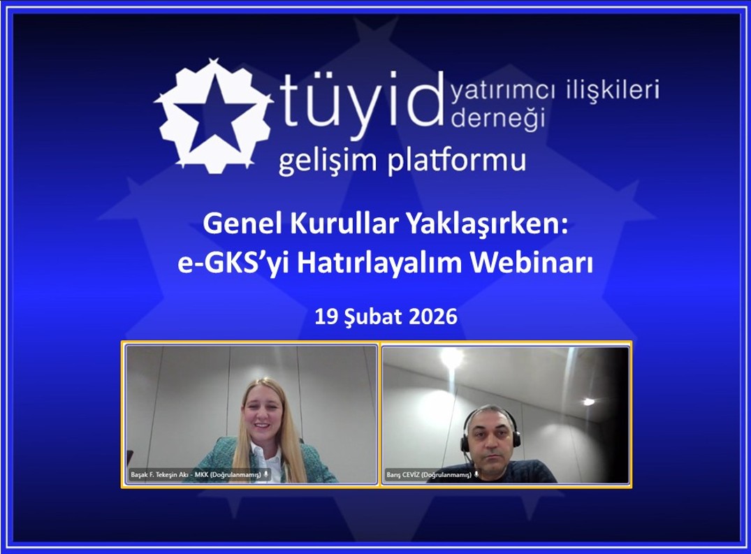 TÜYİD Gelişim Platformu, yatırımcı ilişkileri alanında bilgi paylaşımını ve mesleki gelişimi desteklemek amacıyla online seminer serilerine önümüzdeki dönemde de devam edecektir.
